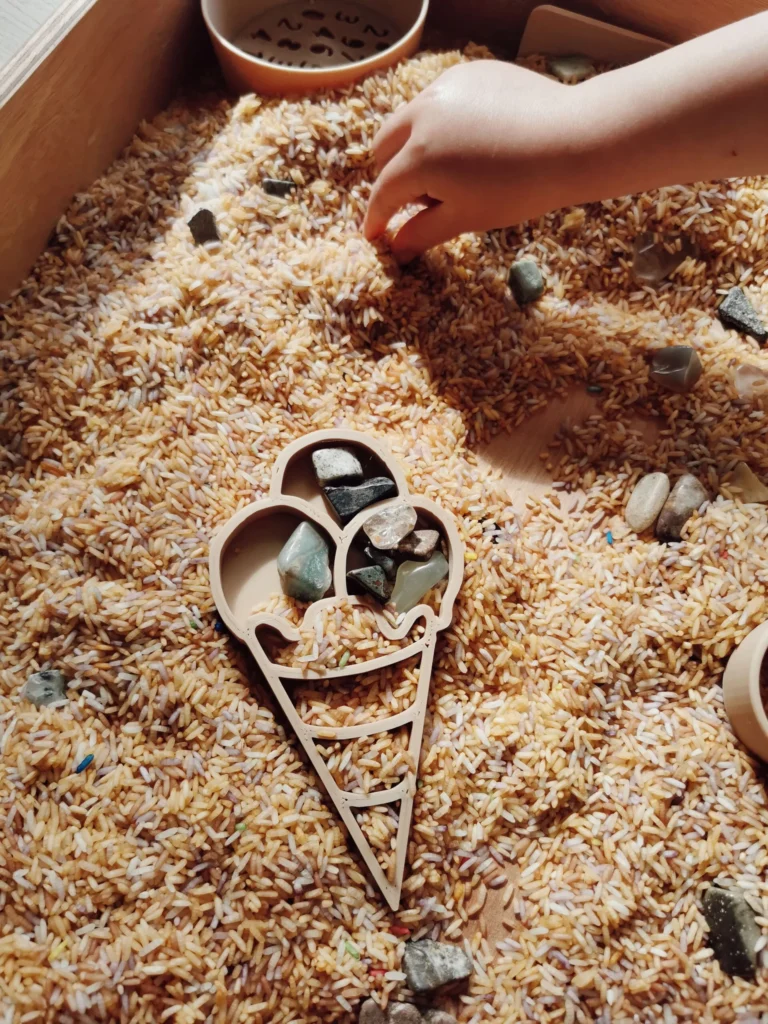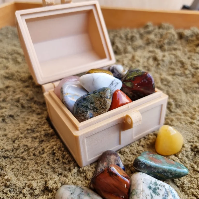 Gebruik de edelstenen in de sensorische speelbak om te verstoppen in speelrijst of zand, of laat kinderen ze sorteren op kleur en vorm. Ook in de modderkeuken komen ze tot leven als “magische ingrediënten” of schatten die gevonden moeten worden.