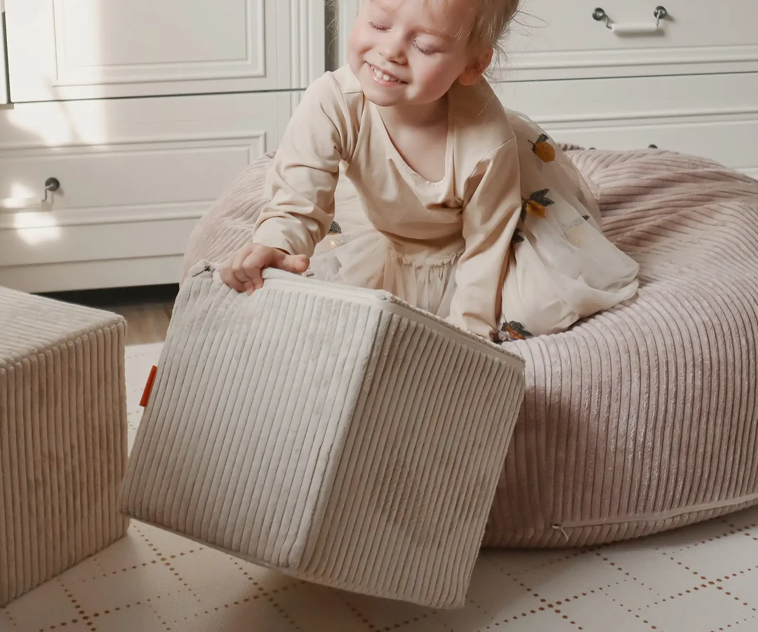 Dankzij het stijlvolle, tijdloze design passen de Cubes moeiteloos in elk interieur. Of ze nu in de speelkamer, woonkamer of slaapkamer staan: de natuurlijke kleuren en zachte texturen maken ze tot een echte blikvanger.