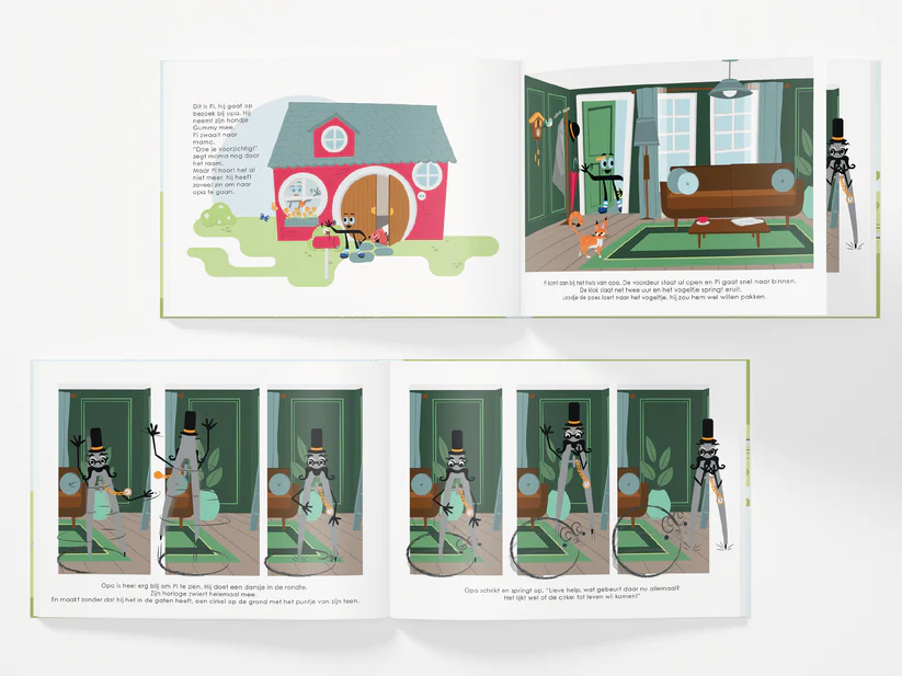 In het educatieve prentenboek “Pi is zijn cirkel kwijt” neemt GrandPi kinderen mee op een verrassend avontuur waarin leren en fantasie samenkomen. Wanneer Pi zijn opa bezoekt, gebeurt er iets bijzonders: een cirkel komt tot leven en rolt zomaar weg! Samen met Pi ga je op zoek naar de weggelopen cirkel en ontmoet je bijzondere personages, zoals een wijze passer en een behulpzame geodriehoek.