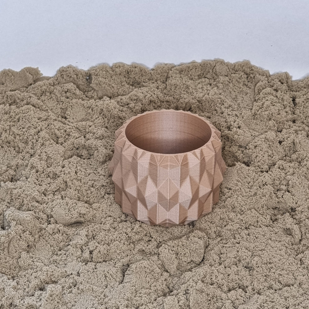 Materiaal: gerecycled houtzaagsel en biologisch afbreekbaar plastic van plantaardige oorsprong.