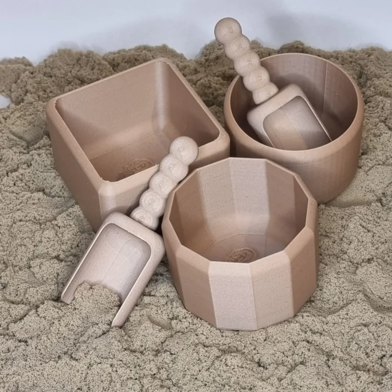Materiaal: gerecycled houtzaagsel en biologisch afbreekbaar plastic van plantaardige oorsprong.