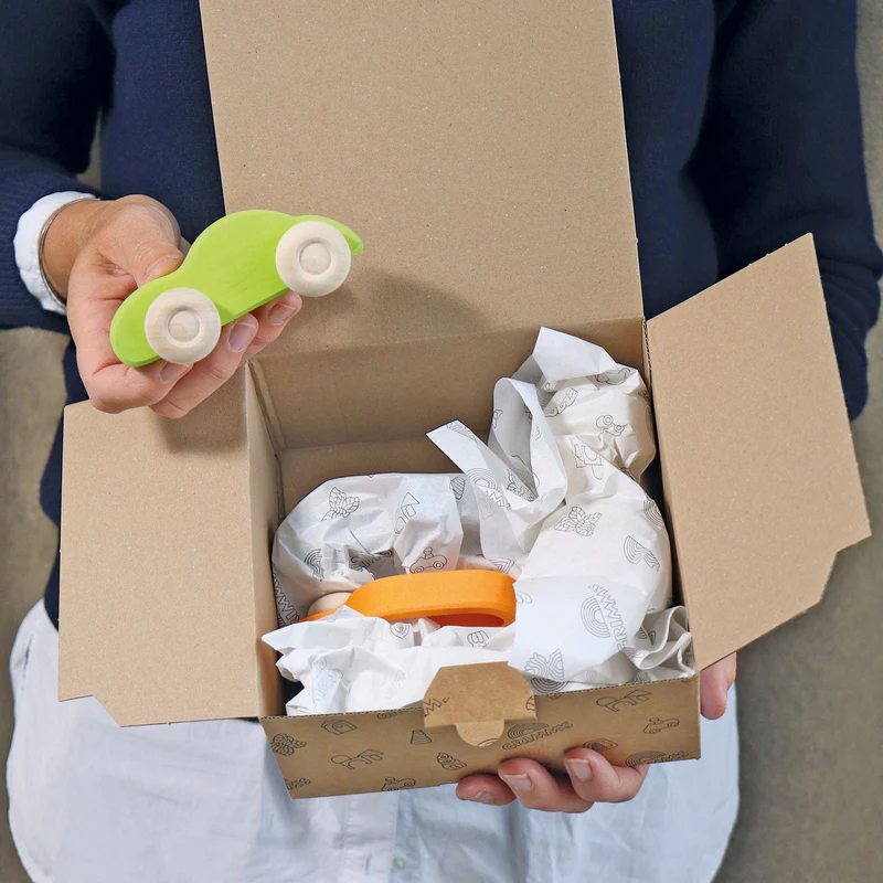 De Grimm’s auto’s zijn zo gevormd dat jonge kinderen ze makkelijk kunnen vastpakken en bewegen. Dat maakt ze heel toegankelijk voor peuters en kleuters die volop bezig zijn met rollen, schuiven, rijden en herhalen.