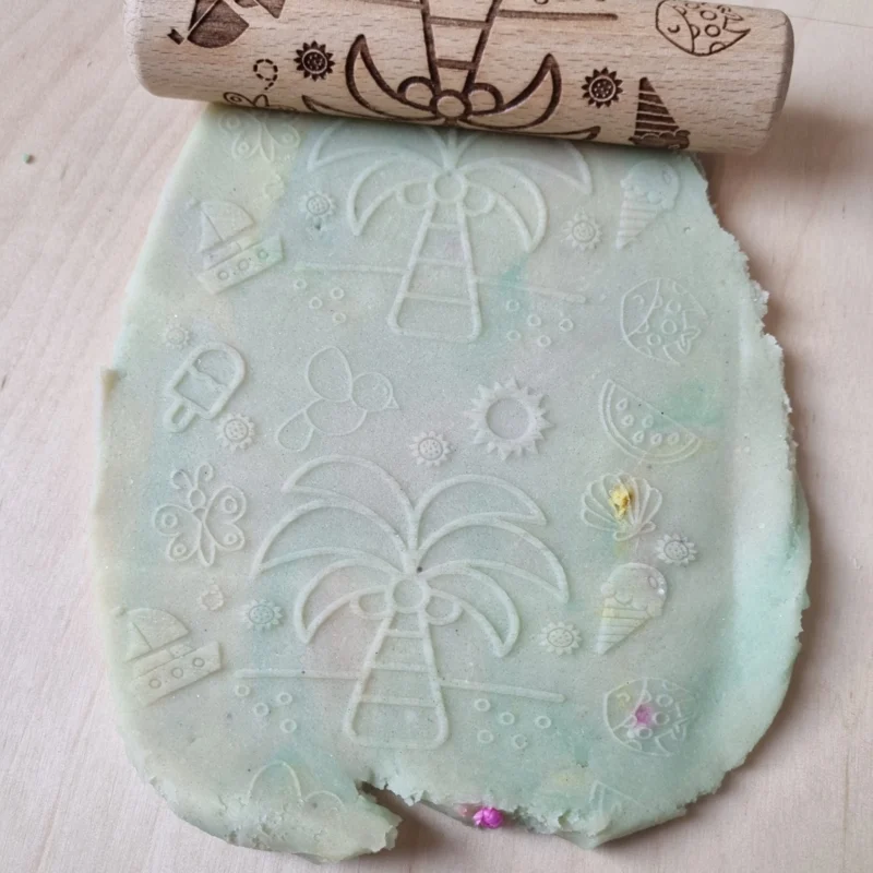Wanneer er klei/deeg in de roller blijft zitten kan deze verwijderd worden met een beetje water en een oude (tanden-)borstel. En/of gebruik een beetje maïzena/talkpoeder op de roller zodat er minder klei in blijft kleven.