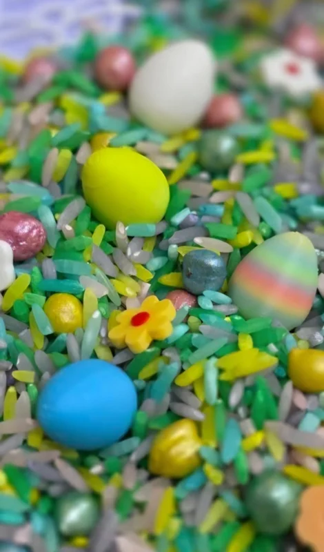 Inhoud: Diverse loose parts zoals paaseitjes, sterren en bloemetjes