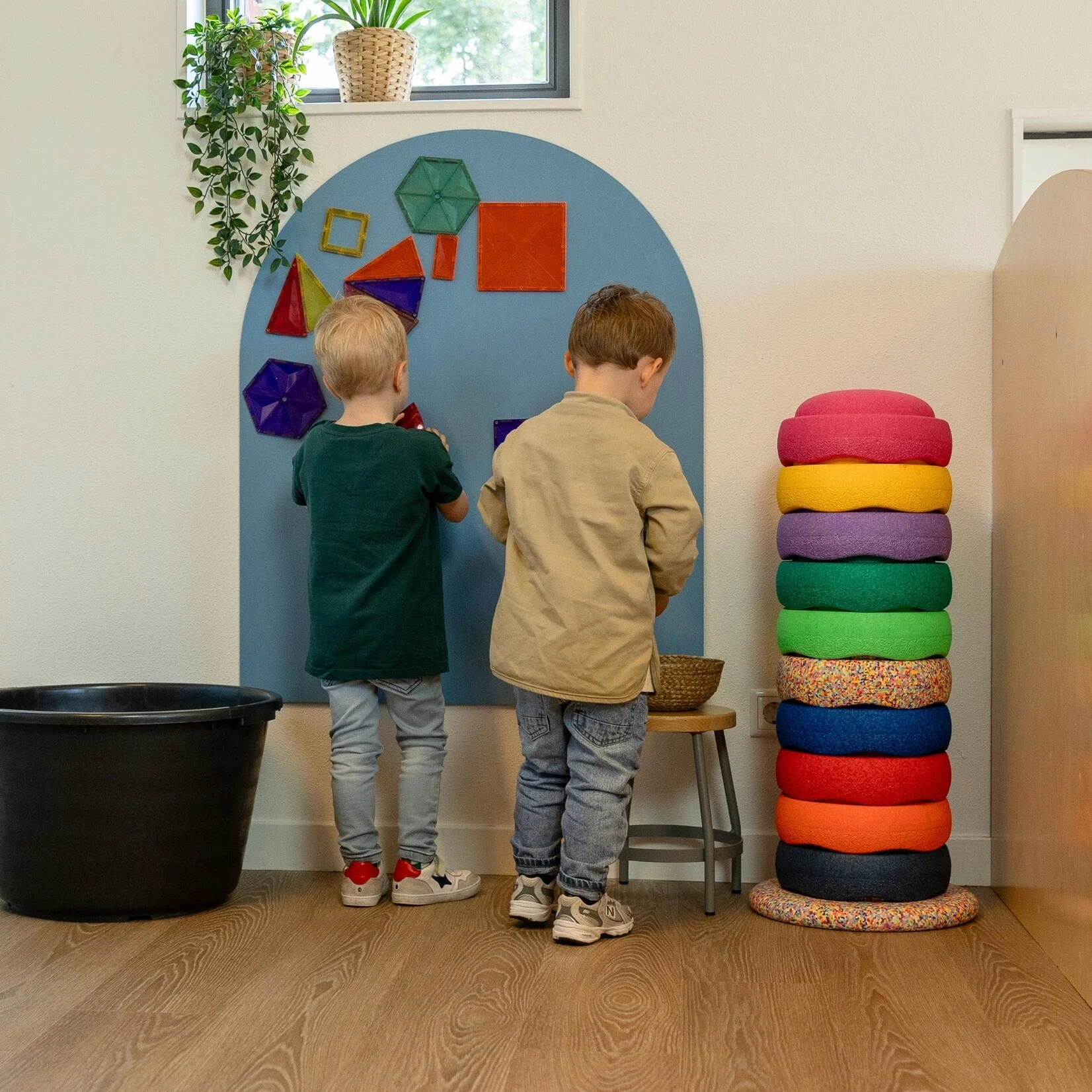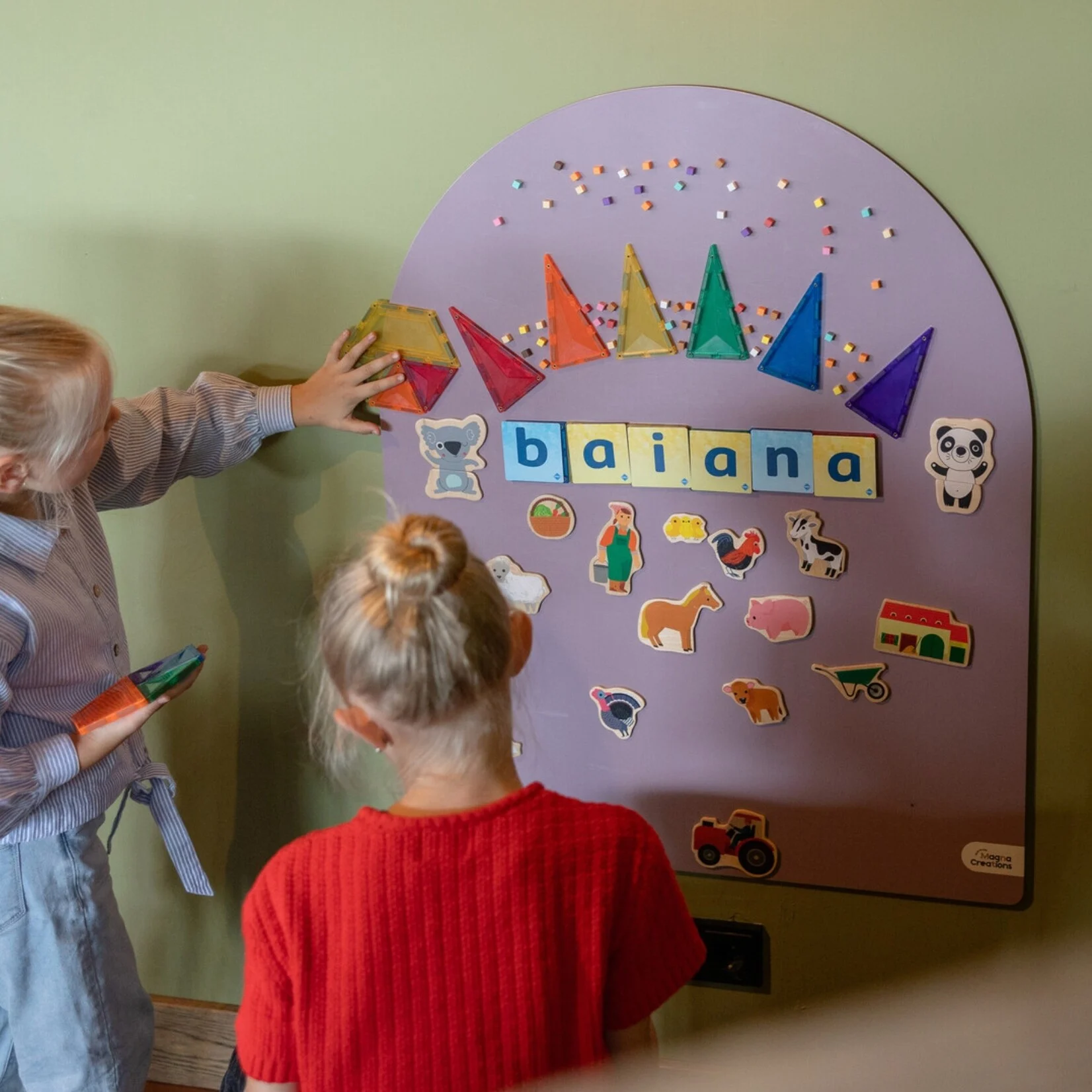 De Magna Creations magnetische speelboog is ontworpen vanuit één eenvoudige gedachte: ieder kind is een kleine maker. Deze magnetische speelboog voor aan de muur biedt een nieuwe manier van bouwen, ontdekken en creëren. Door magnetisch spel naar een verticale speelwand te verplaatsen, ontstaat een compleet andere speelervaring.