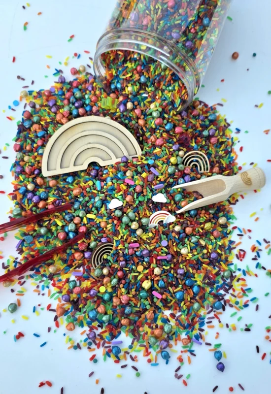 - SensoryMix zoals speelrijst, kikkererwten en gekleurde pasta