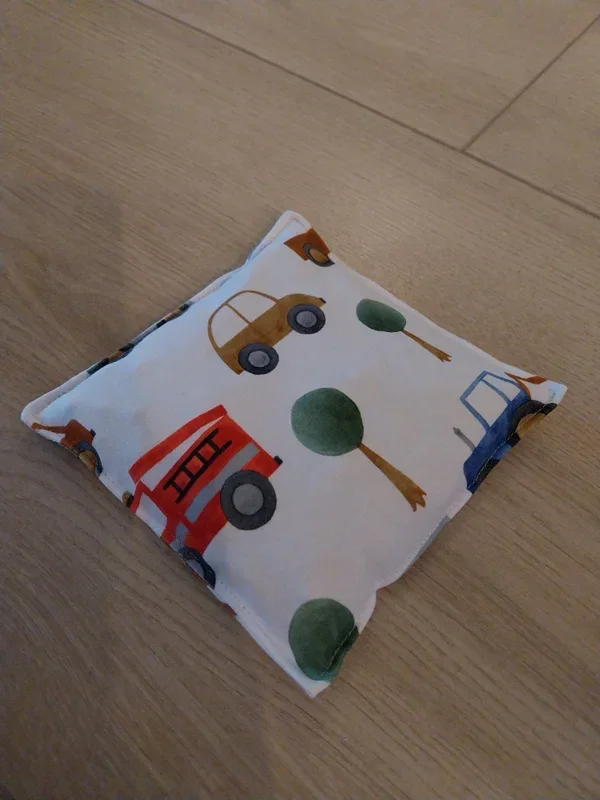 1 pittenzakje gevuld met +/- 130 gram zuivere kersenpitten en met een afmeting van 14 bij 14 centimeter.