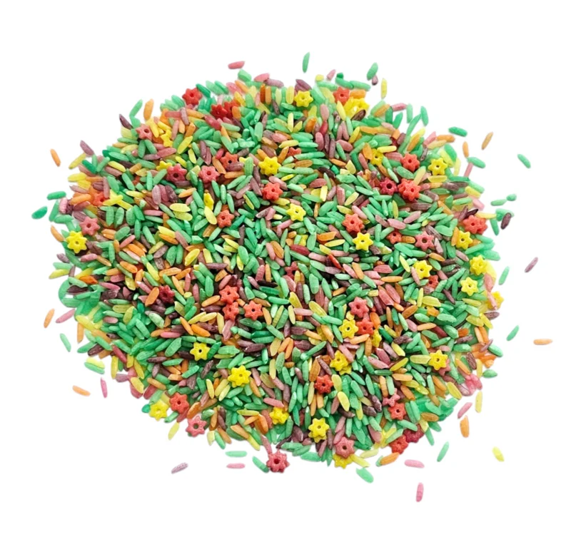 De SensoryFun Speelrijst – Pasen brengt direct een lentesfeer in huis. De mix bestaat uit speelrijst in frisse kleuren zoals geel, groen, rood en andere bijpassende tinten. Een vrolijke basis voor een sensorische speelbak rondom het voorjaar of bloemen.