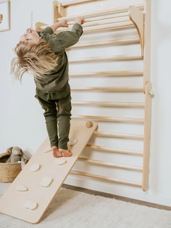 Dankzij het minimalistische ontwerp past deze klimset moeiteloos in een moderne woon- of speelruimte. Of hij nu in de woonkamer, speelkamer of kinderkamer staat – hij vormt een rustige en natuurlijke toevoeging aan het interieur.