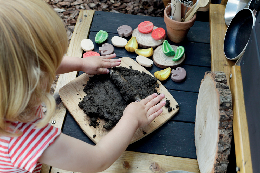 - gebruik de toppings in de modderkeuken met zand, water of deeg